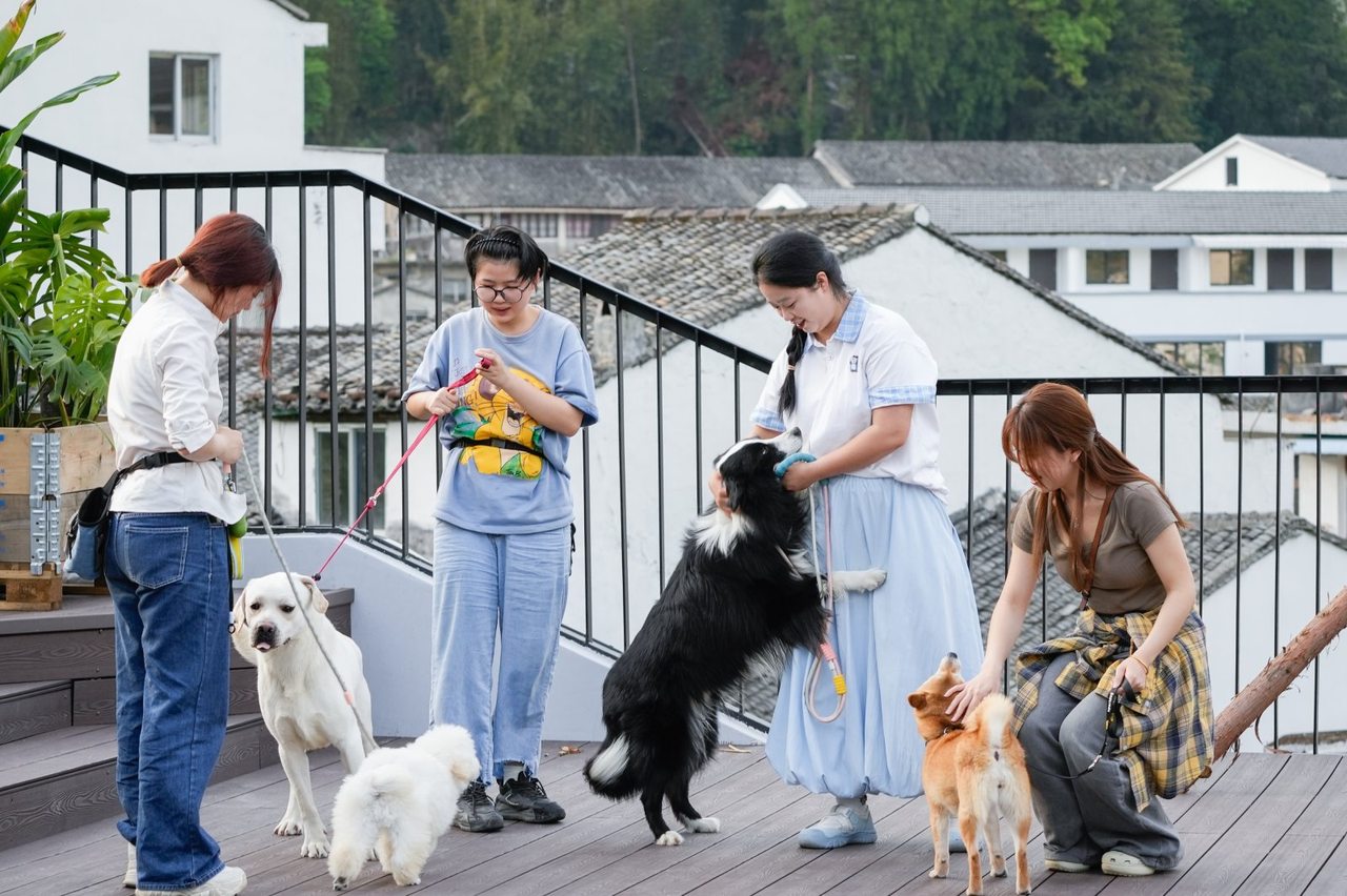 “宠物友好”也已经嵌入浙江省一些地方的文旅领域。湖州市德清县莫干山风景区的柴犬主题民宿“柴屿家”经常承办宠物聚会,9间客房最多接待过25只的“柴犬团”。负责人沛承介绍,还有客人带猫咪、兔子、乌龟甚至小鸟慕名而来,热闹而和谐。同属该景区的网红咖啡馆“荒室”挂着显眼的“宠物超友好”标牌,门口会常备一碗饮用水,供路过的小动物解渴。主理人沈彬表示,咖啡的消费群体与养宠客群高度重叠,他们已在浙江、江苏开出7家“宠物友好”咖啡店,招新时会考虑应聘者是否具备相关专业背景。