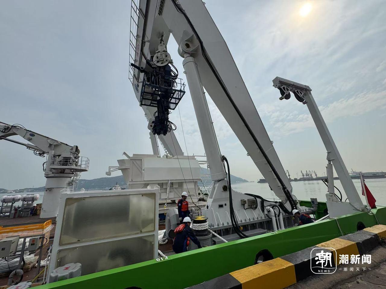 在船尾部,一个高耸的A架格外吸睛。太湖实验室连云港中心助理钮睿告诉记者,这个A架吊重能力为150吨,相当于一个“深海电梯”,无人潜航器、水下机器人等设备就是通过它被放入海底。