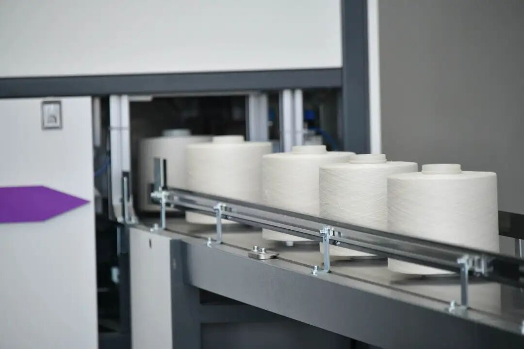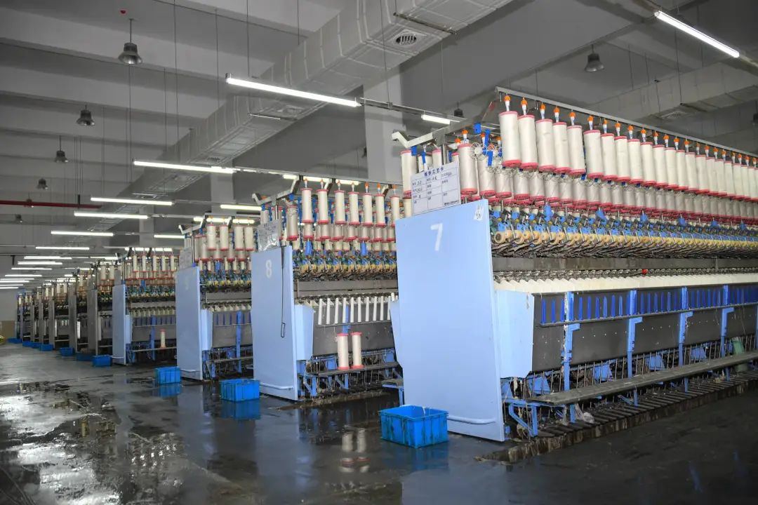 纺纱车间内,一排排细纱机组正高效运转,梳洗出一条条细如发丝的纱线。“新机器的单机锭数从原来的256锭升级至384锭,单机产量直接提升50%;驱动系统还采用了全伺服电机,整体能耗降低10%以上;控制上,还从机械调节变成了数字化触控,直接触屏调整工艺参数,让纱线品质更稳定了。”
