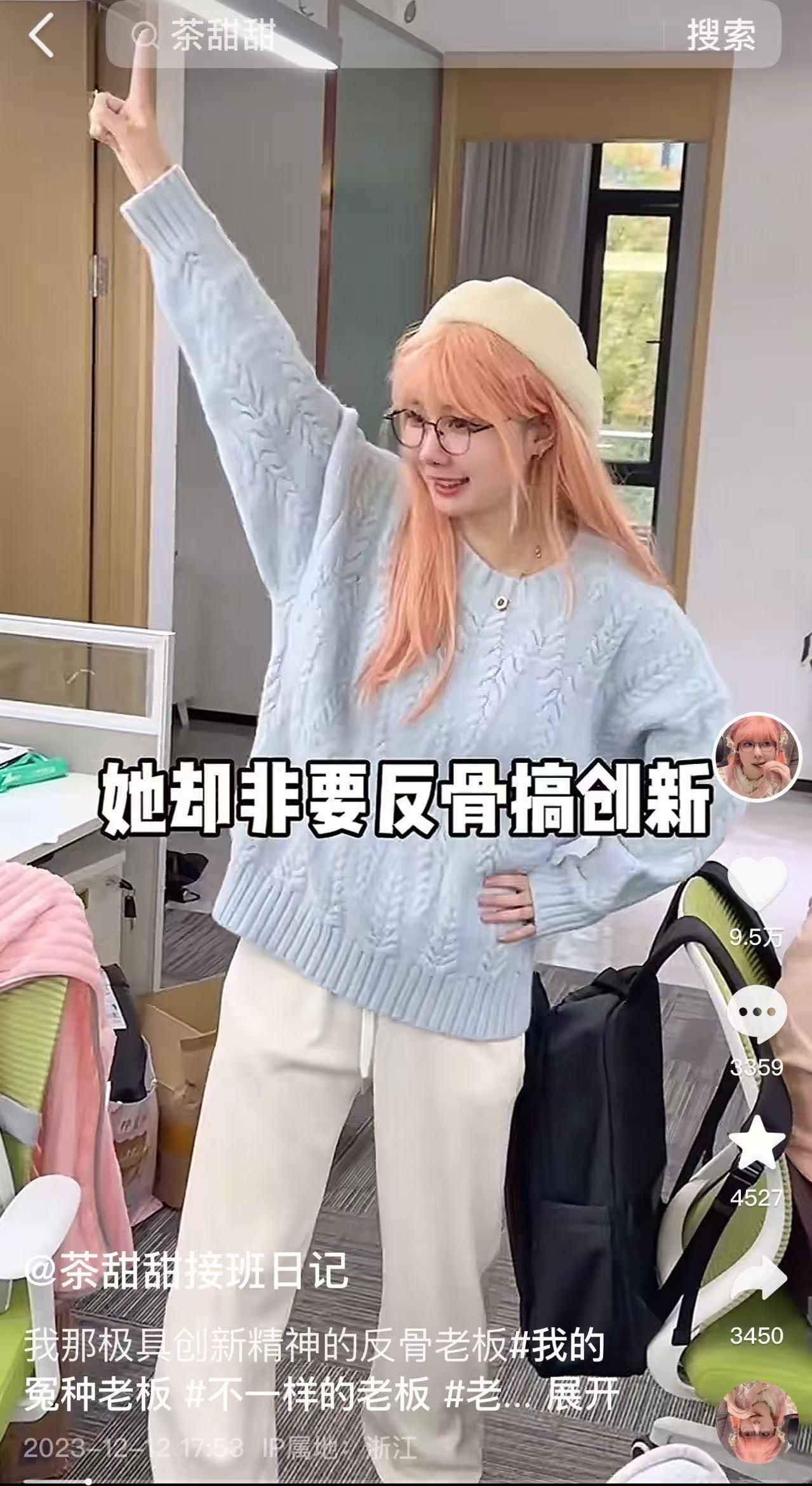 “茶甜甜接班日记”上演反骨人设。抖音截图