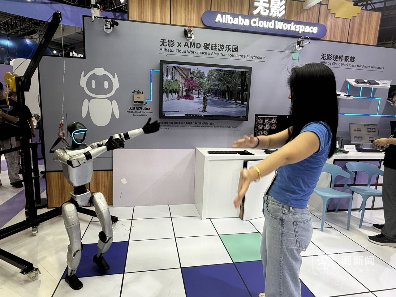 在2号馆的无影展区,机器人几乎就是你的影子,你对着它挥拳,机器人也会用拳头回击你。你摇摆手臂,它也会跟着做同样动作。这背后是无影Agenticcomputer-Shadow的突破性能力。