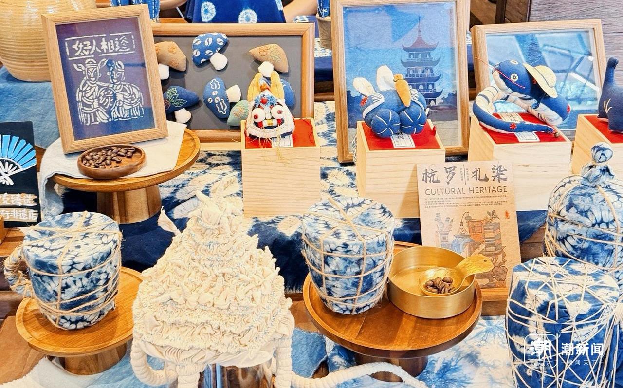 在这里,非遗不是橱窗里的展品,而是可感可尝的体验。特调饮品“杭云青染”将抹茶的青碧与杭罗的意象巧妙融合,顾客小陈品尝后赞叹:“就像把江南烟雨喝进了嘴里。”而店内随处可见的美人鱼扎染图案、三潭印月元素,让这家店成为连接中西文化的独特空间。