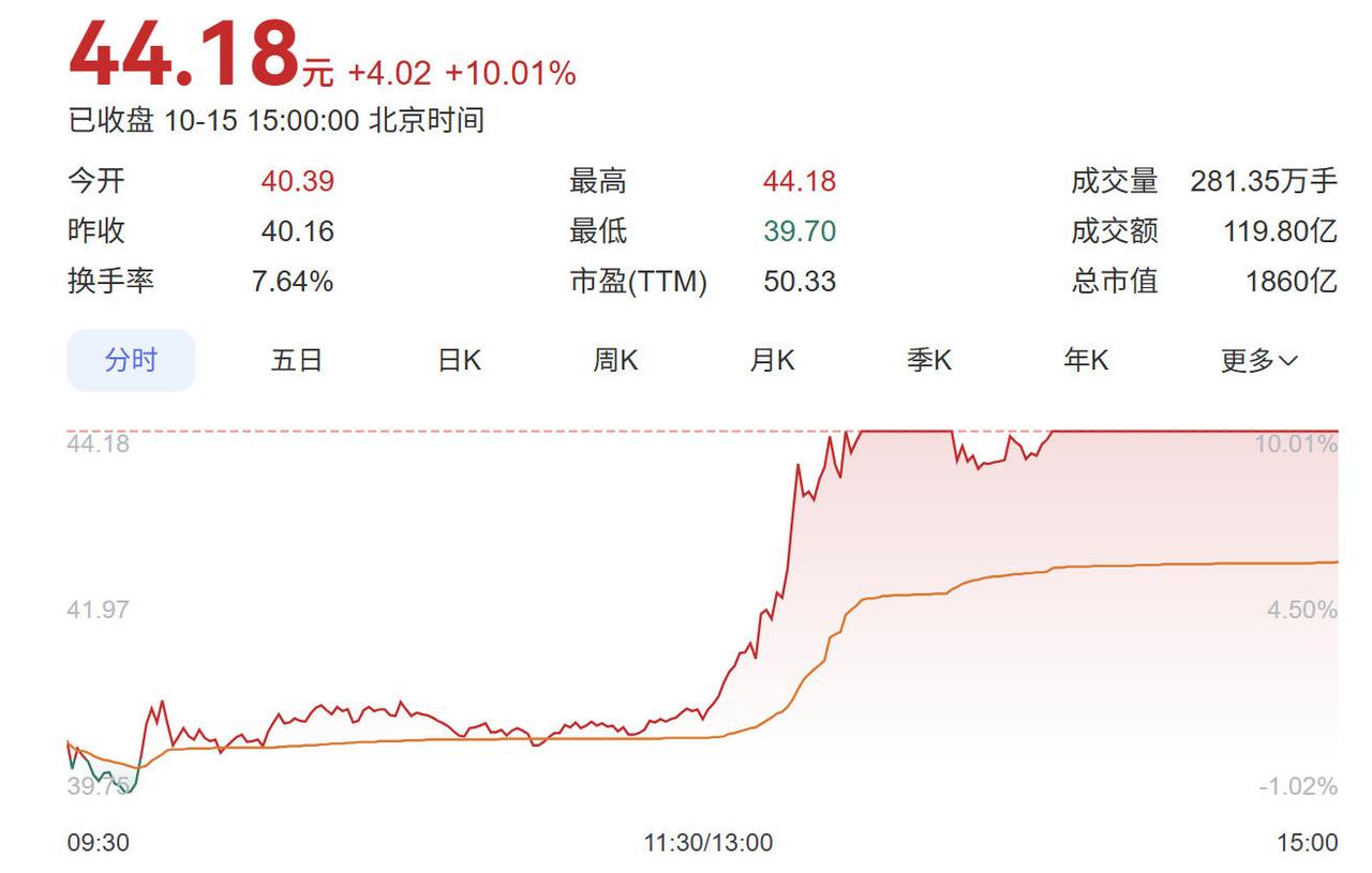 10月15日下午,三花智控股价异动拉升,盘中触及涨停,报44.18元每股。与此同时,三花智控港股也同步拉升,盘中一度涨超13%。