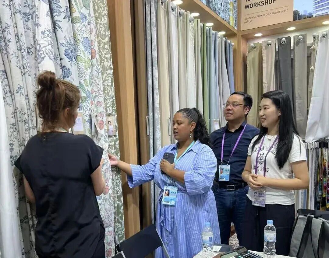 位于绍兴柯桥的浙江金蝉布艺股份有限公司,正是当时的受访企业之一。作为全球窗帘销售的隐形冠军,“金蝉”2024年销售窗帘达1000万套,产值8.7亿元。其中,美国市场占绝对份额,每10户美国家庭就有一户用“金蝉”的窗帘。