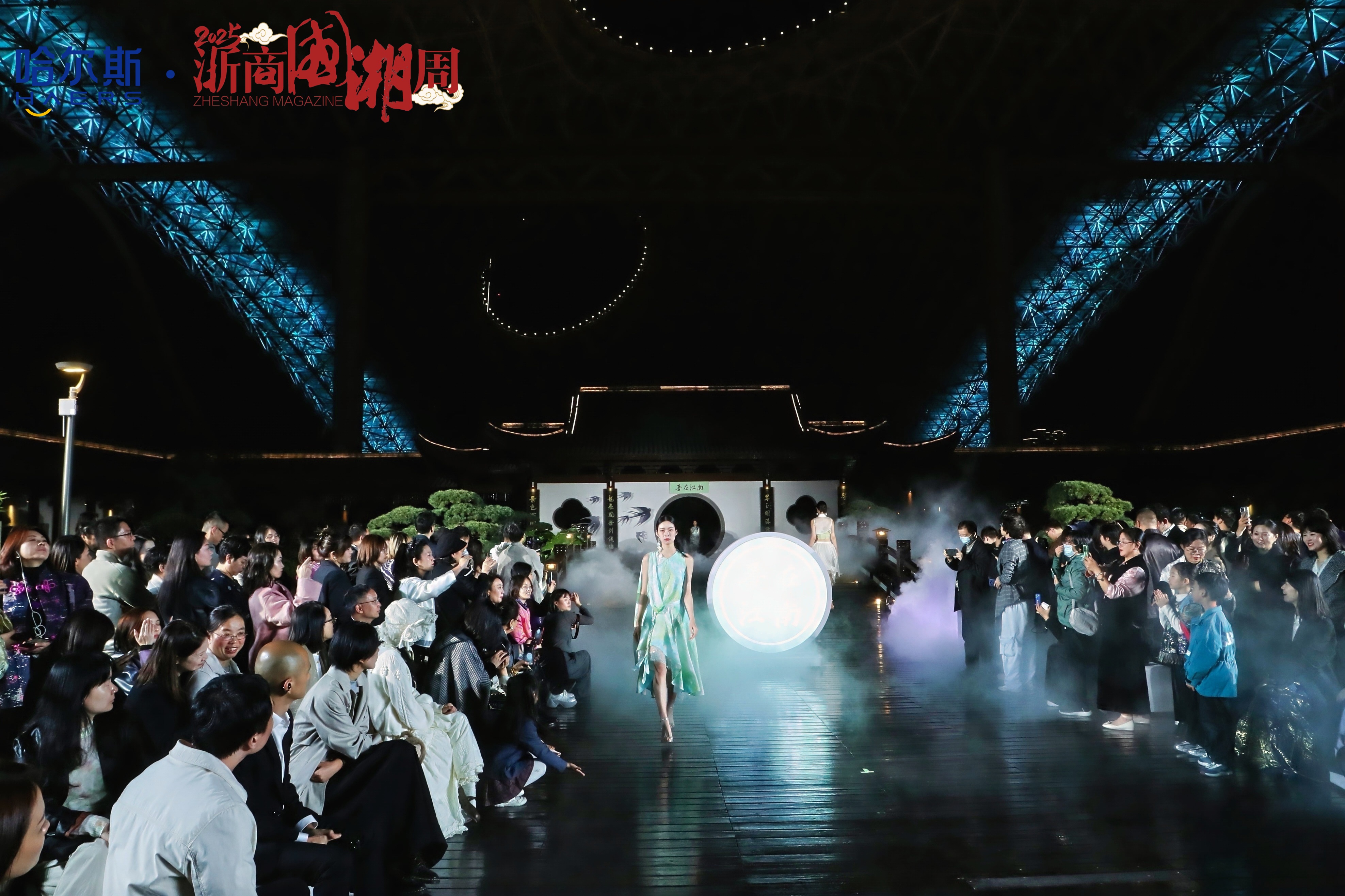 作为“哈尔斯·2025浙商国潮周首秀之夜”的重要组成部分,新中式服饰品牌“吾在江南”举行了一场以“燕归”为主题的2026春夏发布秀。东方美学非遗技艺与江南水乡地域文化在这场大秀上碰撞,古老的技艺通过灵动的设计焕发新的光芒。