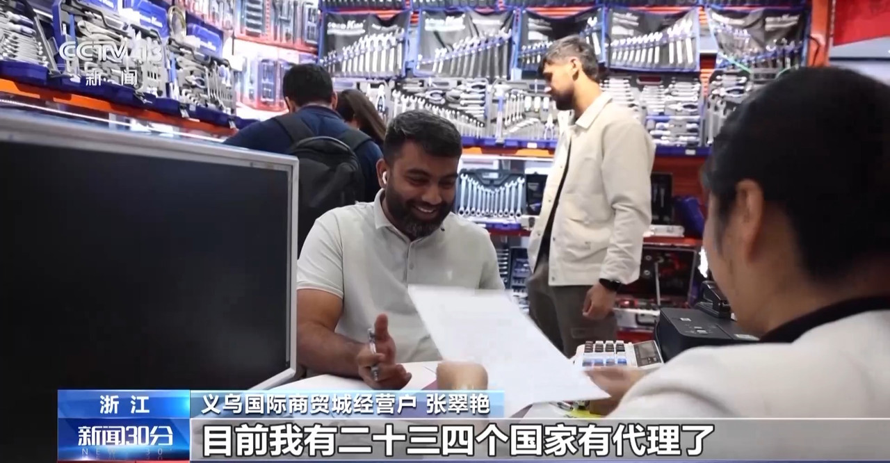 义乌国际商贸城经营户 张翠艳:签完斯里兰卡以后,我在二十三四个国家有品牌代理了,之前品牌代理是中亚比较多,目前中东这边也在发展,南美也都有。
