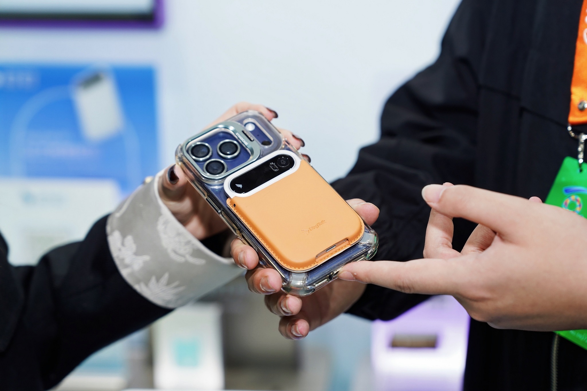 阿里巴巴展区内还展出了钉钉最新发布的AI录音卡片——DingTalk A1。DingTalk A1机身轻薄可便携,磁吸在手机背面就能完成手机通话和日常沟通的录音,并转写、翻译、总结和分析沟通内容,实时同步到手机。它拥有超长续航能力,能够连续录音45个小时,打通了钉钉的待办、日程和AI表格等应用,支持一键分享和协作。DingTalk A1还提供企业版本,支持企业进行统一的设备和数据管理,设备录音文件在设备端、App端、云端都进行加密存储。