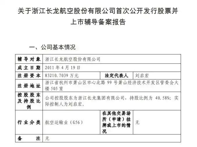 已完成IPO辅导备案!浙江长龙航空拟登陆A股