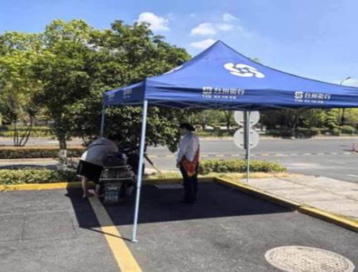 支行始终关注客户的实际需求。在炎热的夏季,他们发现许多小微企业主骑车前来办理业务时,常因长时间暴晒而疲惫。为此,支行迅速在网点门口搭建临时纳凉棚,并设置电瓶车停放区,为客户提供阴凉、安全的等候空间。这一举措不仅解决了客户的“小烦恼”,更传递出支行“想客户之所想,急客户之所急”的服务情怀。