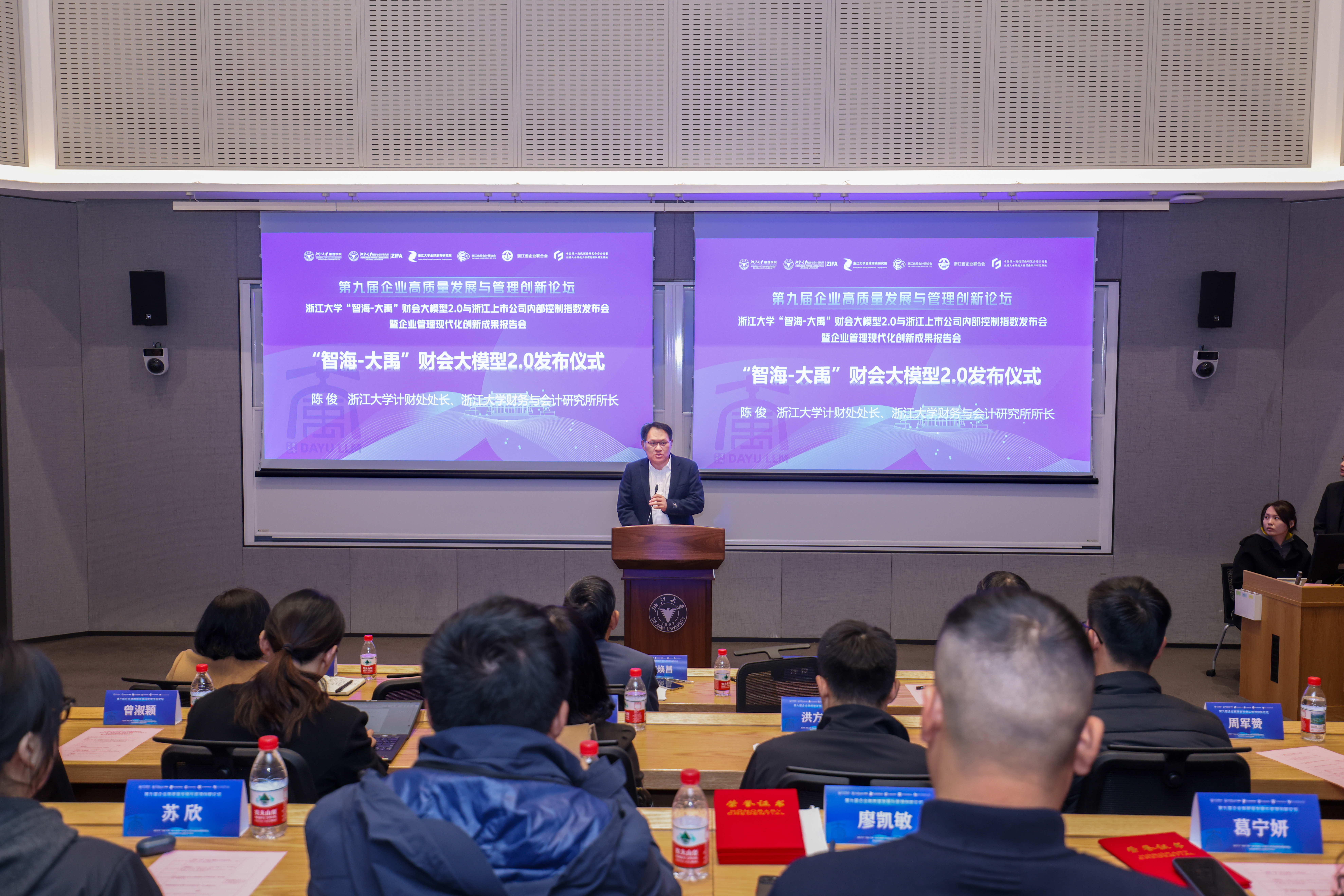 世界浙商客户端讯(记者 张恒 通讯员 刘源 杨丝喻) 11月20日,第九届企业高质量发展与管理创新论坛——浙江大学“智海-大禹”财会大模型2.0与2025浙江上市公司内部控制指数发布会暨企业管理现代化创新成果报告会在浙江大学紫金港校区举行。来自相关政府机构、监管部门、协会、高校、上市公司、中介机构等单位的专家学者及业界精英围绕企业高质量发展与管理创新深入分享与讨论。