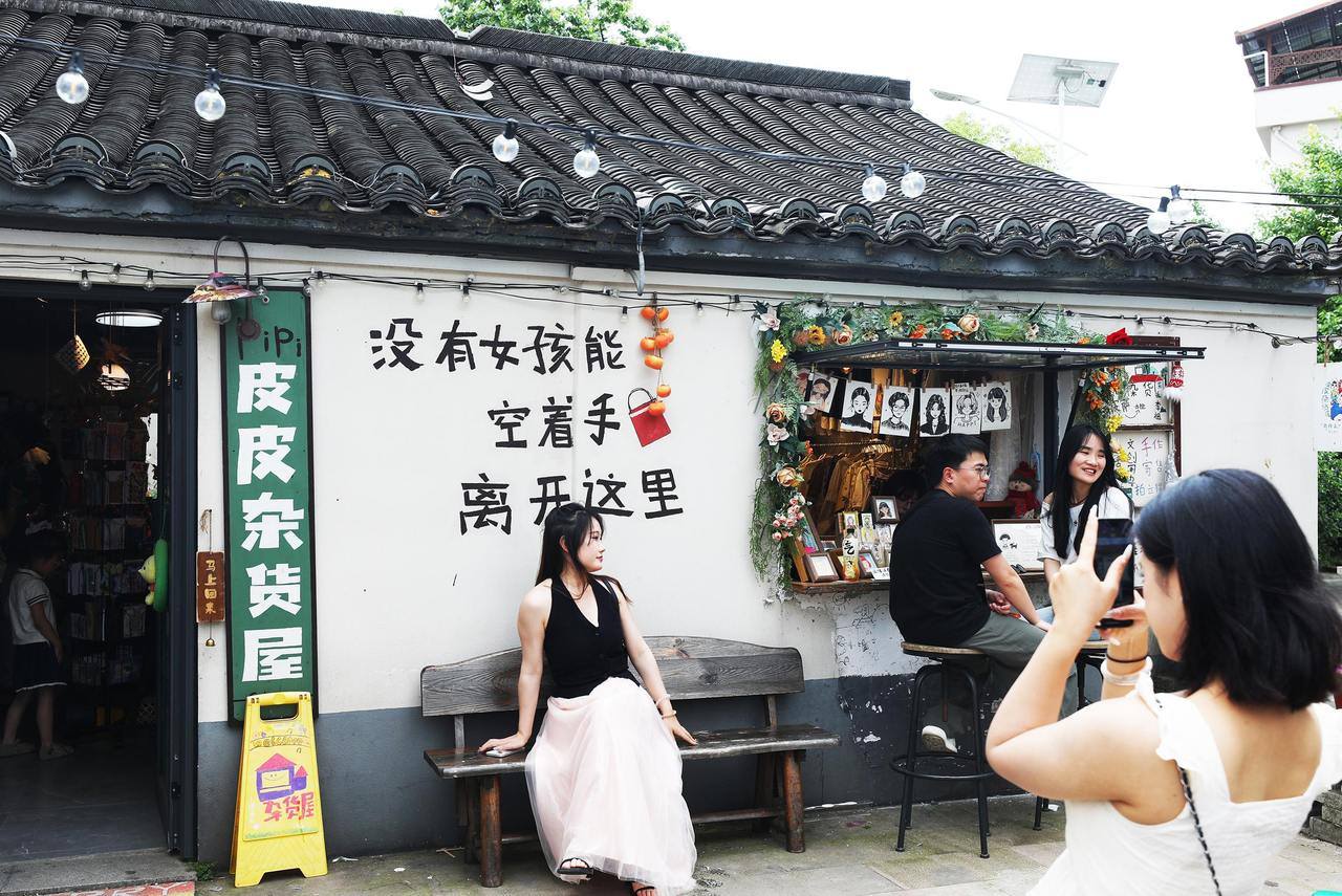 2025年5月1日,游客在义乌市李祖村的一家农家小院拍照。龚献明 摄