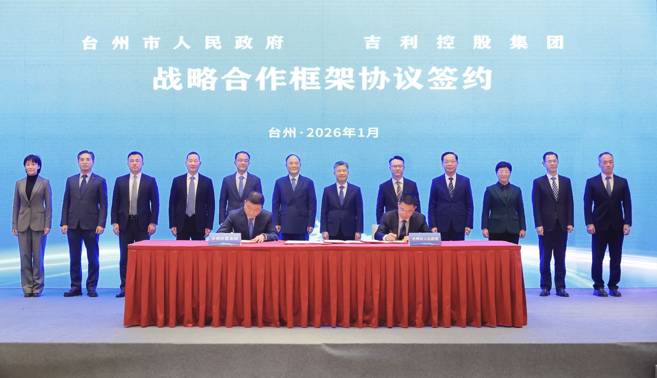 1月8日,台州市人民政府与浙江吉利控股集团有限公司签订战略合作框架协议。这是双方合作的再深化,也是台州制造向“新”而行的一桩大事。李书福表示,“吉利汽车在起步阶段就提出了台州汽车王国不是梦,今天的框架协议签订,就是要把这个梦想变成现实。”