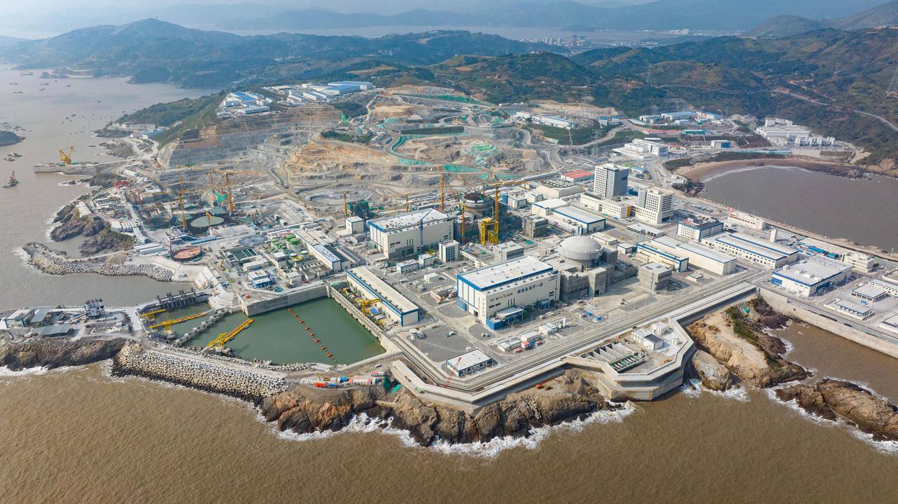 不远处,1号机组的圆柱形核岛已展露雄姿。去年底,该机组完成首炉核燃料装载,进入带核调试阶段,将迎来商运投产。