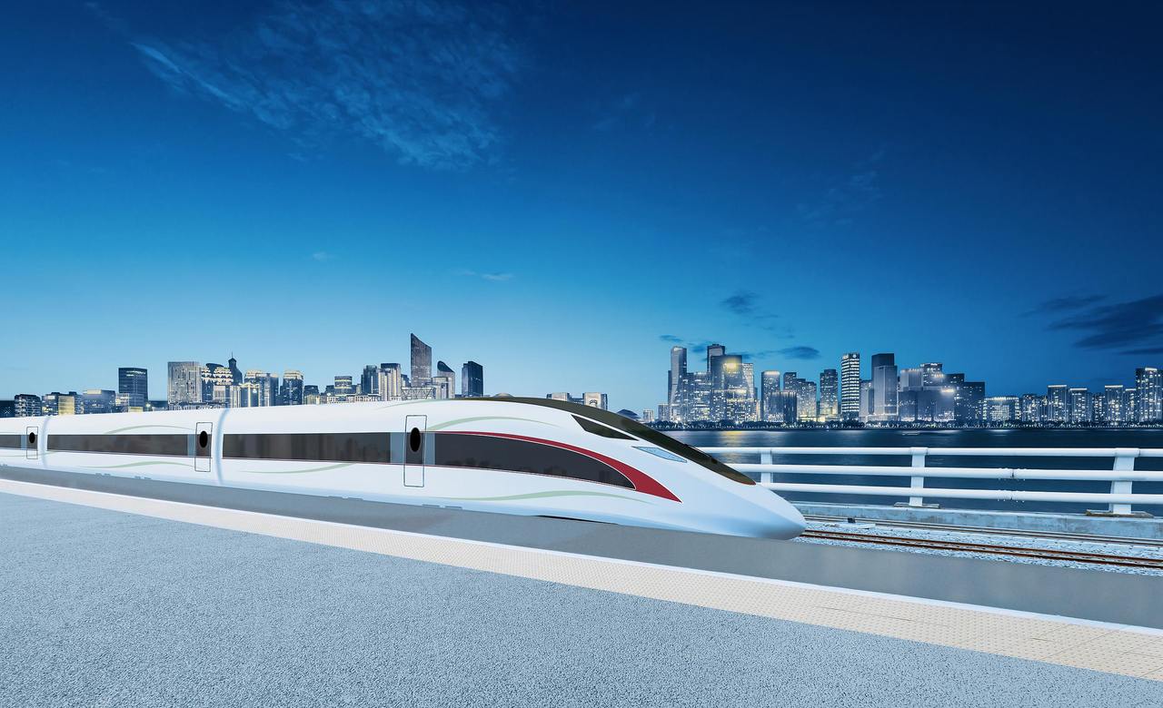 高速列车车站与杭州钱江新城风光。图源视觉中国