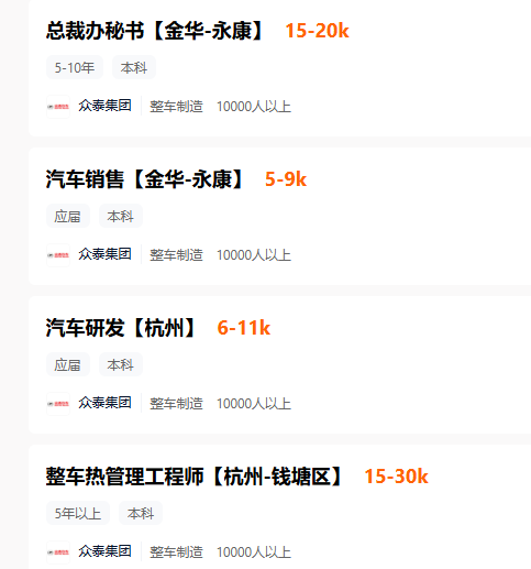 此外,众泰汽车还启动了相关人员招聘,涉及工程师、设计师等,岗位包括诊断工程师、动力电池系统主任工程师、悬架主任工程师等,招聘岗位数量超过40个,主要分布在金华和杭州两地。
