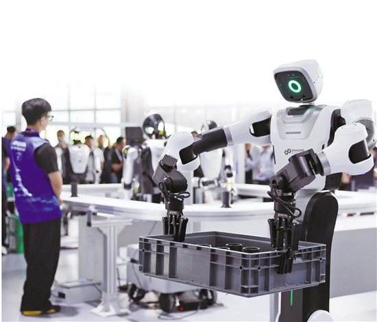 在杭州云栖小镇举行的2025云栖大会上,乐聚人形机器人应用场景展示。 本报记者 魏志阳 摄