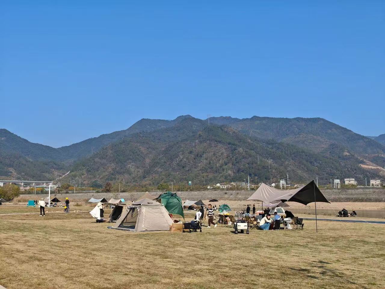 在莲都区凤鸣河滩公园露营的市民。 图片来源 莲都发布