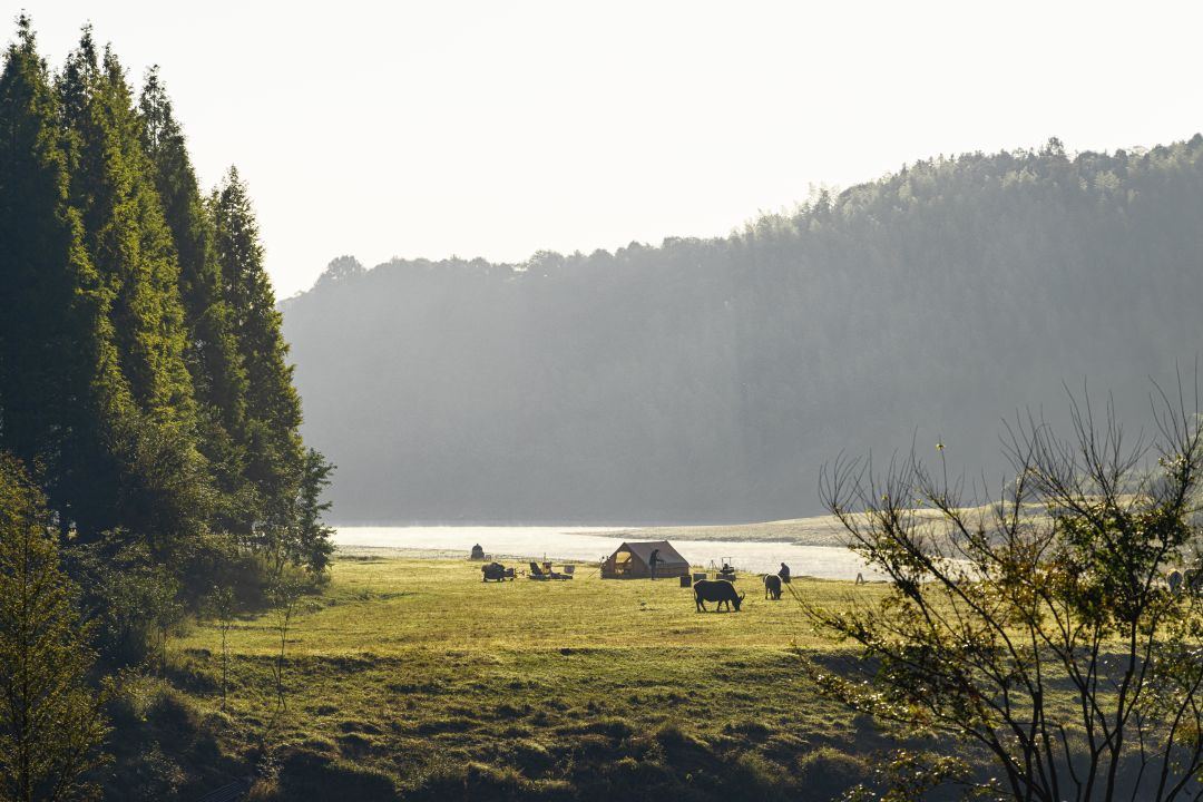 湖州安吉小杭坑被誉为“浙江小瑞士”,高山草甸搭配湖景,视野开阔,作为长三角老牌网红露营地,需提前线上预约,目前已成为年轻游客打卡、家庭出游的热门之选。