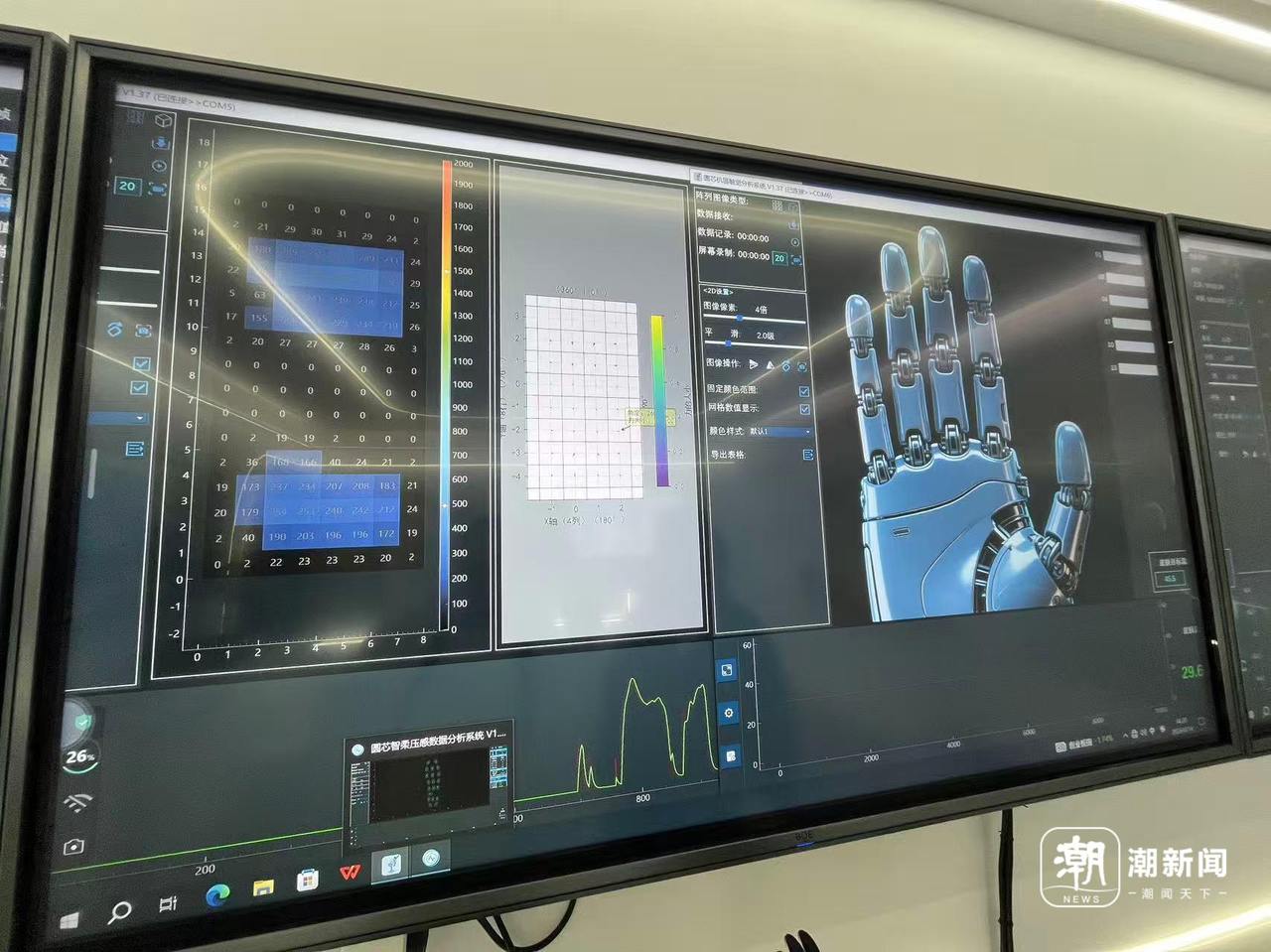 正是这种“材料自研、设备自造、工艺自有”的产业底座,让公司在印刷柔性电子领域筑起了一道护城河。如今,圆芯电子不仅能在纸张、塑料、布料、皮革甚至硅胶上印刷,还能在同一传感器上集成压力、温度、距离等多种感知功能。一款搭载自主研发指腹传感器的机械手,展示了这项技术的前沿实力,“1平方厘米内集成了240个感应点位,感知越丰富,应用在机器人‘皮肤’上就越接近人类的真实触觉。”陈韦宁说。