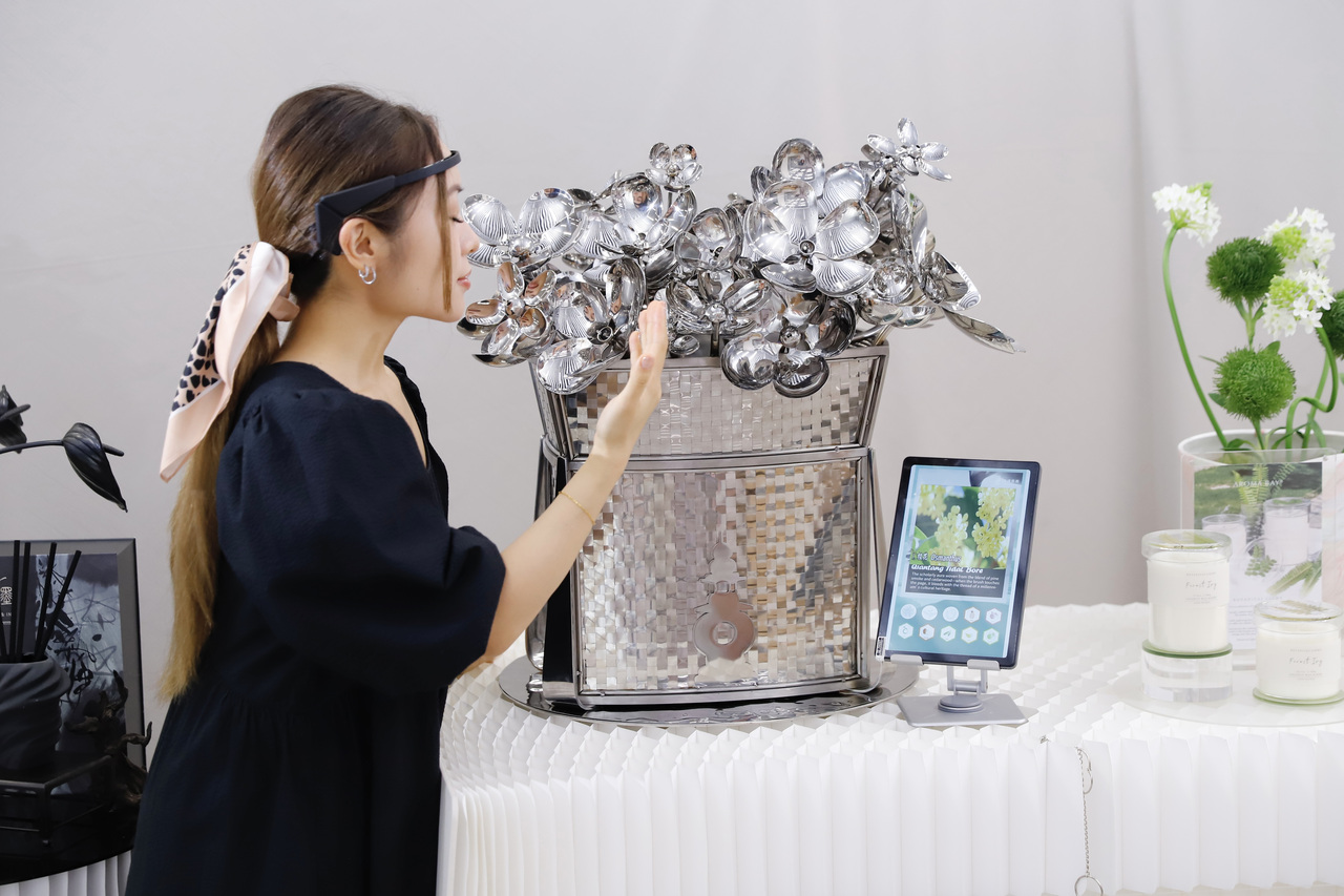 2025年7月,大阪世博会“杭州日”现场,美通带来了一个新装备:观众戴上智能设备,闻到不同香味时,脑电波就会在屏幕上实时“画”出其情绪变化的曲线。不少人感叹,原来香味与情绪的关联可以被如此直观地“看见”。