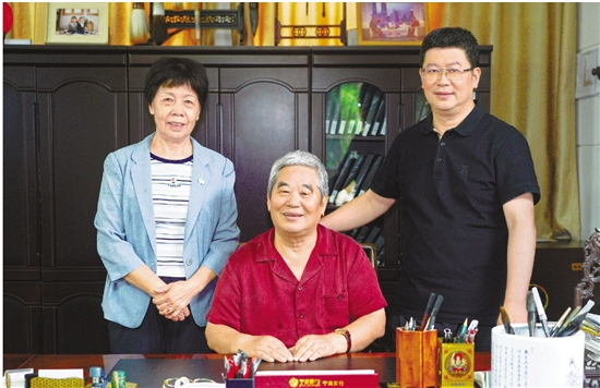 2024年,储吉旺与爱人朱爱芬、儿子储江在如意公司合影。 受访者供图