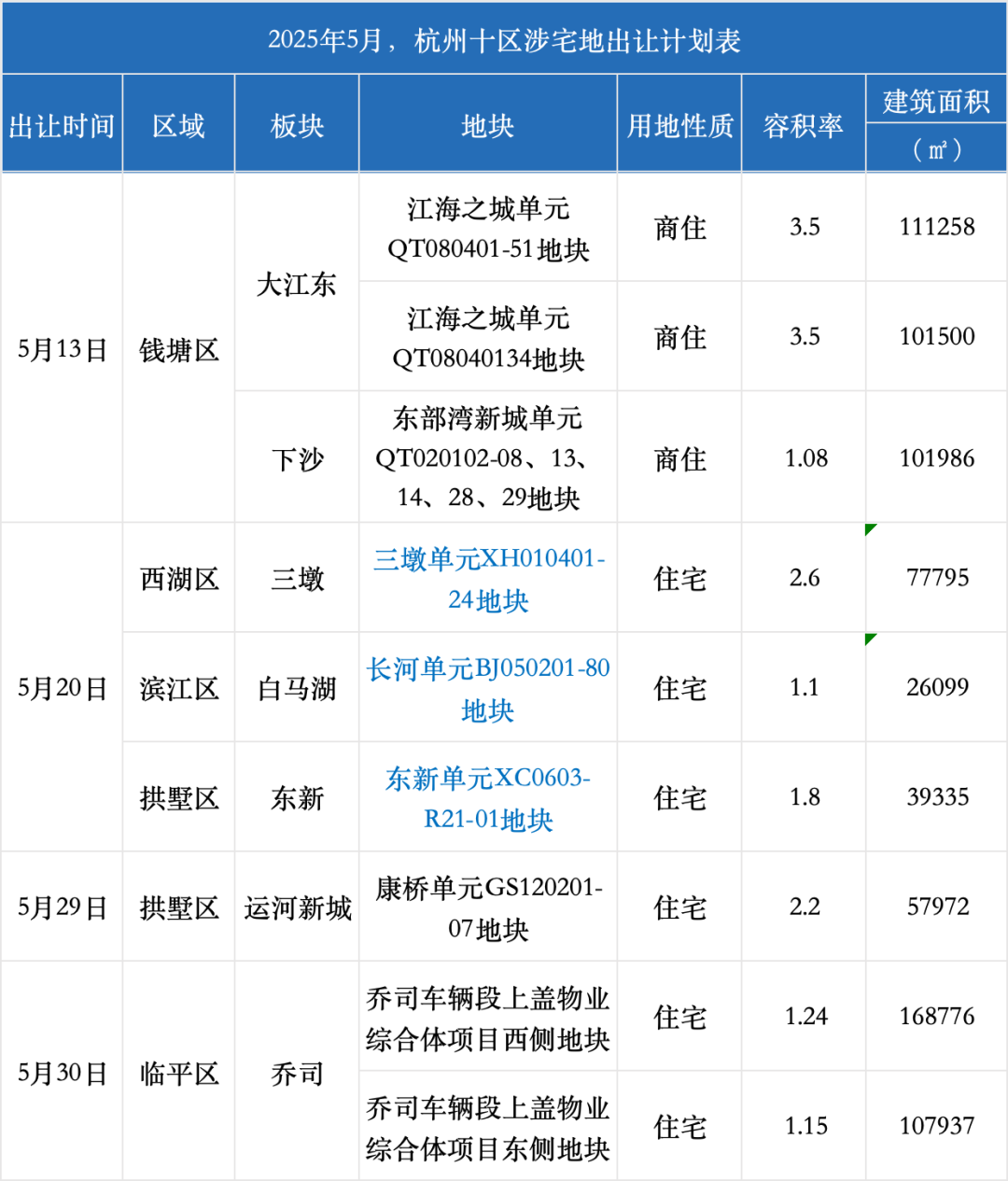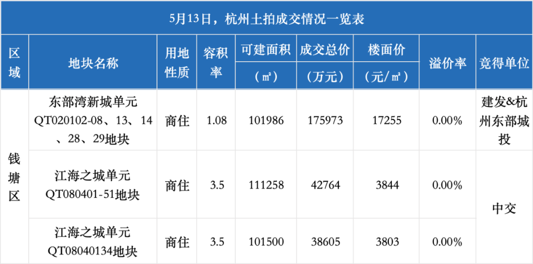 杭州今日土拍全都底价成交,最低楼面价仅3803元/㎡!