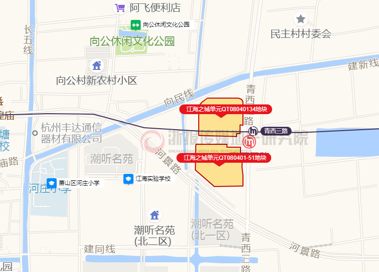 江海之城单元QT080401-51地块,江海之城单元QT08040134地块,为地铁8号线青西三路站上盖TOD项目。