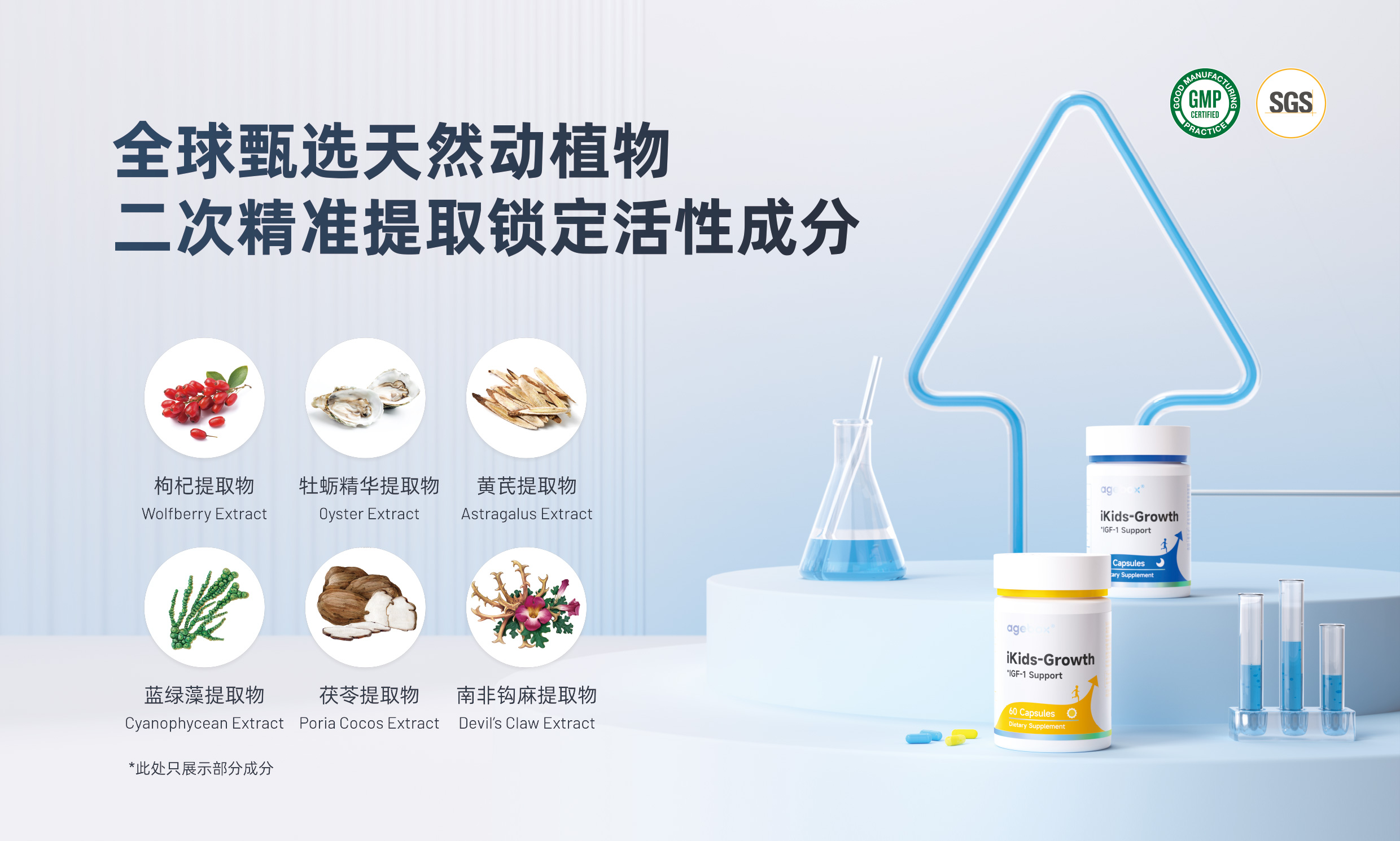 在研药物尚未面世之前,再造再生的膳食补充剂管线成果构成了企业最早的产品池。其中,面向广大正常偏矮身材儿童开发的膳食补充剂产品阿基孚,不仅在儿童生长发育领域脱颖而出,更是在生长激素占据主流的市场中,开创了“口服IGF-1增敏剂”这一全新品类,为行业注入了新的科学思路。