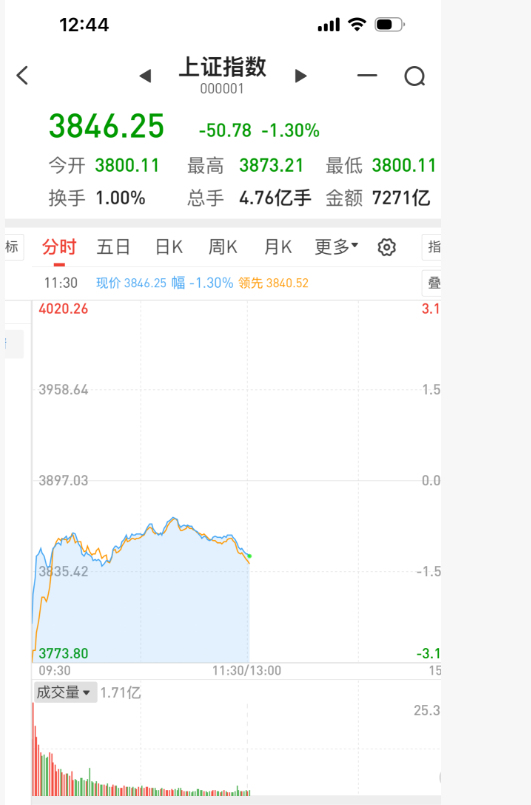 今天早上,A股市场大幅低开后快速反弹。截至午间收盘,沪指下跌1.3%,报3846.25点;深成指跌2.56%,报13013.34点;创业板指、科创50指数、北证50指数分别下跌3%、0.43%和2.43%。全市场上涨个股有843家,下跌个股4550家。
