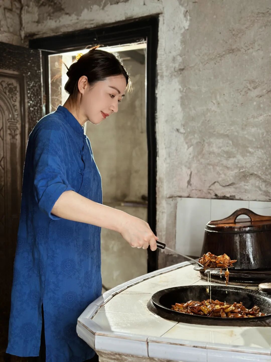 “宁波话里,有一个字叫‘㸆’,意思是慢火缓烧,讲究的是一个火候。宁波很多美食,都是围绕这一个‘㸆’展开的,油焖笋也不例外。制作油焖笋,不需要太多其他的调料。往锅里加入切好的笋,倒入油、老酱油、糖,用农家的柴火灶台小火烤制约8个小时。要等笋肉饱吸滋味,锅底浮出清澈纯油,方算大成。”裘丽娜介绍道。