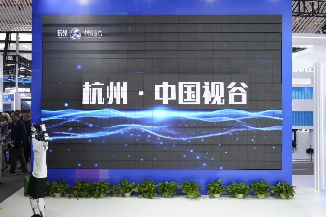 来到博览会A4-06“中国视谷”展区,杭州·中国视谷六个大字呈现3D波浪起伏的视觉冲击力,27家视谷企业的前沿产品在占地302平方米的“中国视谷”专题展区一一铺陈开来。
