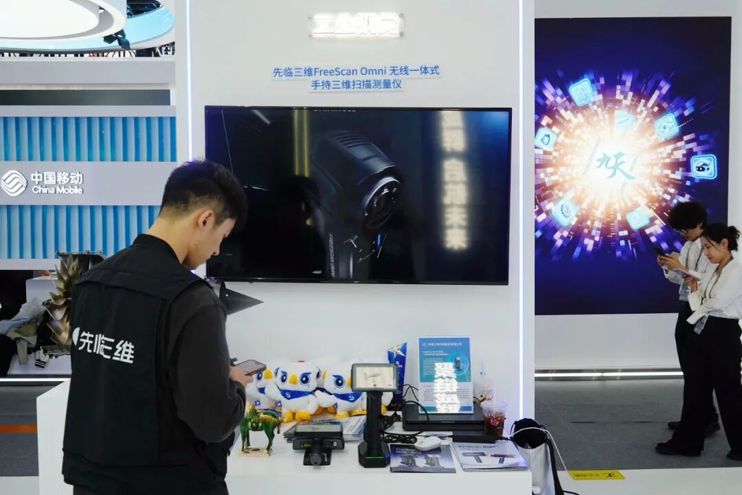 展会现场,先临三维呈现了一款具有划时代意义的产品——FreeScan Omni无线一体式手持三维扫描测量仪。精度最高可达比一根头发丝还要细的0.02毫米,扫描速度可达835万点/秒,可以实现一台设备独立完成“三维扫描+三维检测”,适用于多种工业3D测量场景。