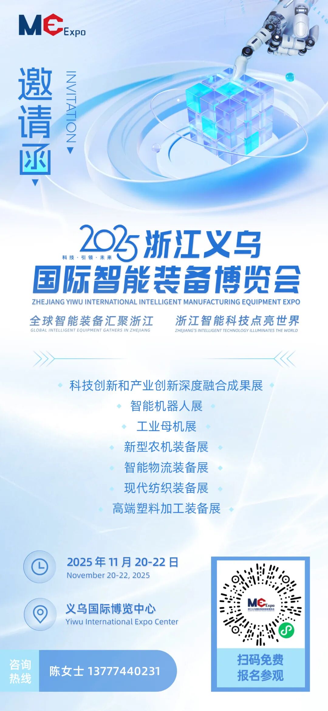 当“中国制造”向“中国智造”加速迈进,高端智能装备成为产业转型的核心引擎。11月20日至22日,以“全球智能装备汇聚浙江 浙江智能科技点亮世界”为主题的第11届浙江义乌国际智能装备博览会(下文简称“义乌装博会”),将在义乌国际博览中心盛大启幕。