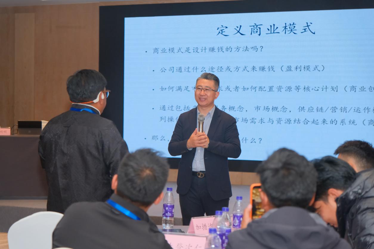上午,朱明明老师以《商业模式定位与产品开发》为主题,用其丰富的经验和独到的见解,为企业家们深入剖析了投资与市场趋势洞察这一方面,他指出,企业家们要读懂方向,看透商业背后的本质,明晰宏观趋势的微妙变化,当前企业家眼光聚焦点应随市场发生变化,比如从寻找风口到长期主义,从流量红利到品牌复利,从实用主义到文化艺术等等。随后,朱老师与学员们积极开展课堂互动,通过创新能力小测试调动学员们的积极性,并双向交流,让学员们分享自己的企业运营模式并提出问题,展开集体讨论与解答。学员加措达布分享了自己将西藏赛马文化的附加产品与自媒体平台进行融合的思想,得到了朱老师的高度评价。在之后的环节里,朱老师用新西兰航空公司如何扭亏为盈这一实际案例引导学员们积极思考,引出“针对用户需求,打造品牌标签”这一核心理念。最后,他指出,作为创业者,要不断同用户深层次交流,拓宽自身的视野、增加信息量,寻找灵感,以寻求做出真正能解决用户痛点的好产品、好项目、好想法。