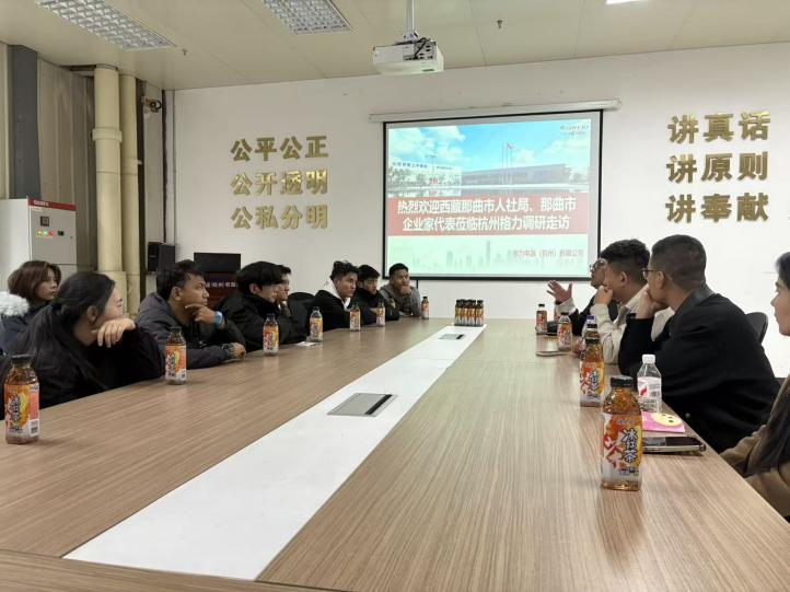 同时,申科长一行人下午带领那曲企业家代表来到格力集团(杭州)基地,看望今年 11 月刚入职的那曲青年们,送上家乡的牵挂与鼓励。一见面,申科长便与青年们围坐交流,仔细询问工作适应情况、住宿饮食是否习惯。“刚踏入新岗位,有不懂的就多问、多学,格力是大品牌,你们要珍惜这个成长平台,踏实积累本领,既扎根企业好好发展,也为那曲争光。”他的话语朴实有力,让青年们倍感亲切。针对大家提出的工作适配、生活便利等疑问,申科长与企业负责人现场沟通协调,帮助解决了工作上的实际问题。紧接着两位企业家也对家乡的孩子道出了心声,语重心长的用家乡话对他们进行了慰问,交谈中了解他们的工作、生活以及对未来的打算,并且希望他们能在这里实现自我的人生价值。随后,一行人还参观了格力集团(杭州)基地的生产车间与研发中心。现代化的生产线高效运转,先进的研发设备让人眼前一亮,那曲企业家代表们纷纷感叹格力强大的制造实力与创新能力。在参观过程中,青年员工们也主动分享自己在格力的工作收获与成长感悟,他们表示会努力提升自己,不辜负家乡的期望。申科长鼓励企业家代表们借鉴格力先进的管理经验与创新模式,结合那曲本地特色,探索适合自身企业的发展道路,为那曲的经济发展注入新活力。