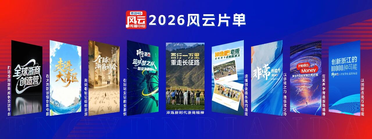 浙商的创新之路,是一条由技术破壁、生态聚力、品牌破层共同铺就的坚实道路,这条路,少不了“传播合伙人”的陪伴。作为记录者、见证者、传播者,ZMG风云传播中心一直以大经济大传播大链接的视野格局,积极发挥主流媒体的资源整合嫁接优势,以“非常传播力”主动链接浙商、服务浙商,打造讲好浙商故事的新平台、新场景。2025年,风云传播中心带着浙商西行做公益,和浙商一起在美丽乡村种地,让新生代浙商跨界做脱口秀,一系列的风云传播,绘就了非常图景。活动现场,ZMG风云传播中心这个成立两年多的“创新工场”又一口气发布了2026年的九大“年度片单”: