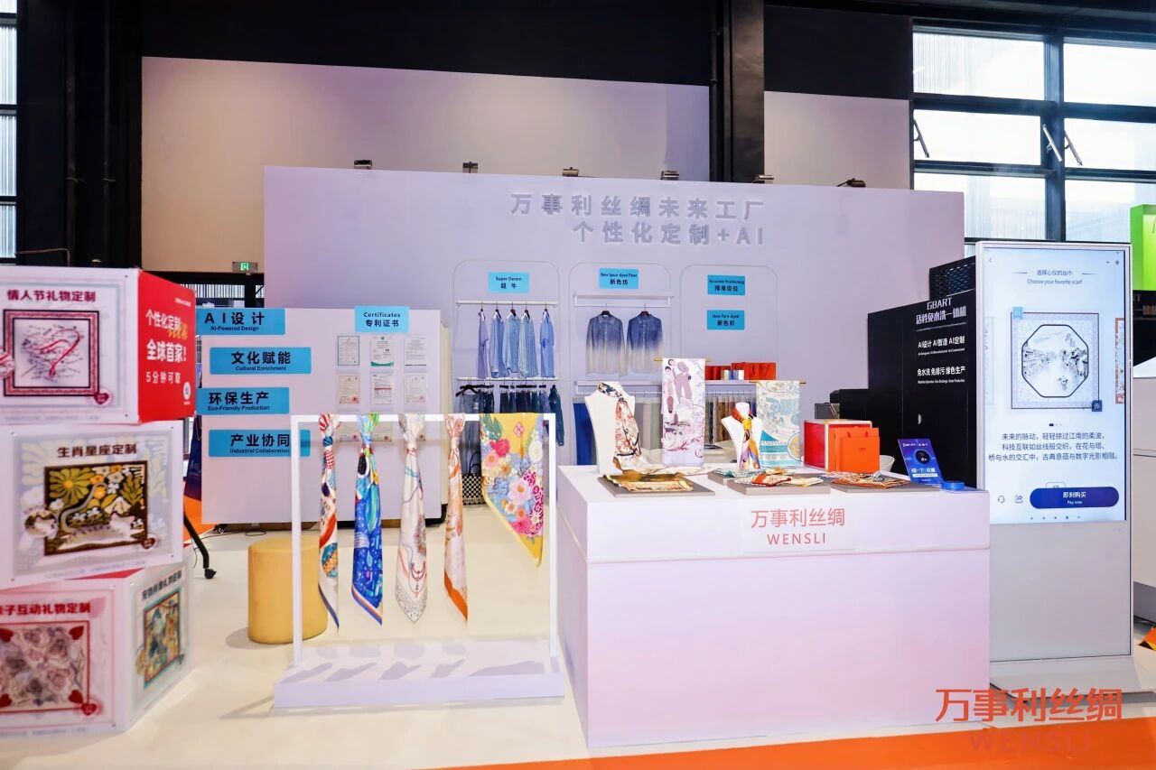 11月上旬,2025年世界互联网大会乌镇峰会举行,万事利的展台挤满了消费者。数字屏幕上流光溢彩,只需输入“敦煌飞天”“现代都市”等关键词,数秒之内,数十款融合古典神韵与现代美学的丝巾设计方案便跃然屏上。