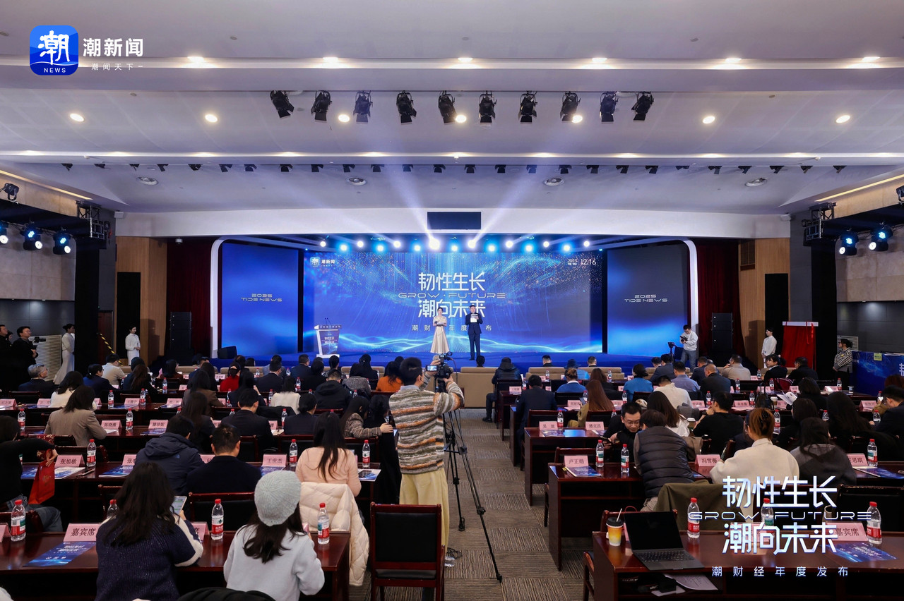 12月16日,浙报国际会议厅,潮新闻主办的“2025潮财经年度发布”在这里启幕。下午两点刚过,人群便开始汇集。有别于以往财经会议的严肃,这里的整个氛围,更多是一种如老友般重逢的松弛与热络。