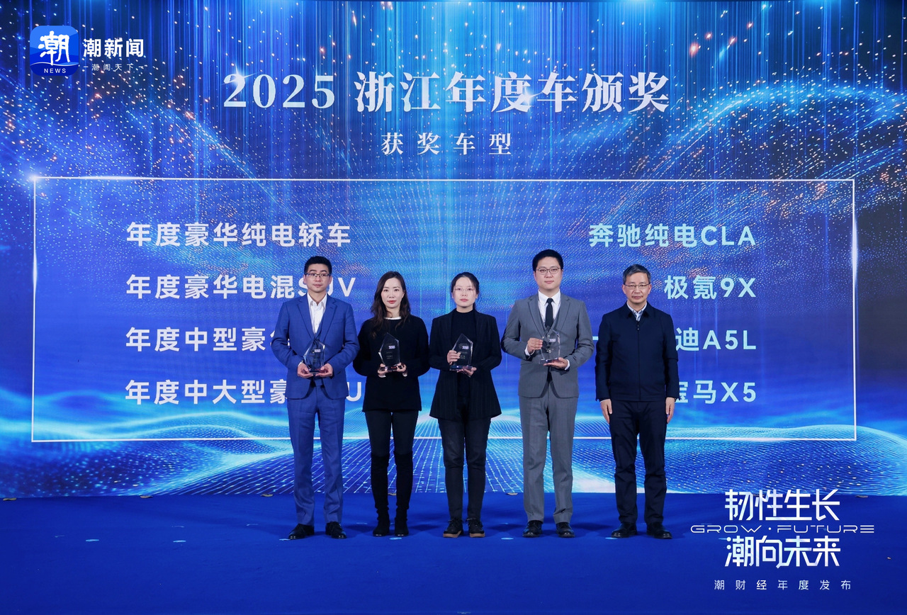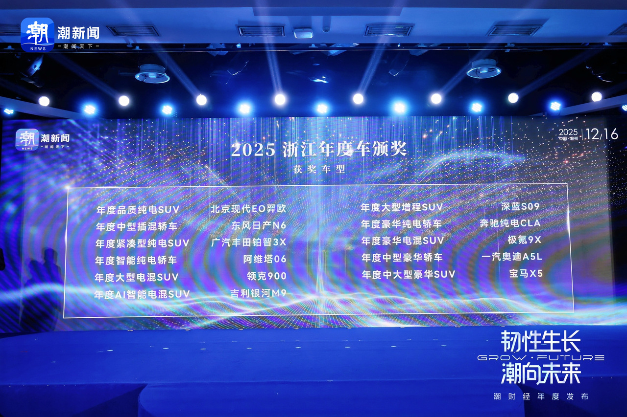 12月16日,首届潮新闻“潮财经年度发布”璀璨启幕,2025浙江年度车榜单同步发布,11款车型脱颖而出,荣获2025浙江年度车型。