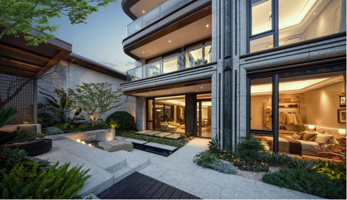 项目以约1.8低密容积率,定制建面约185-215㎡运河奢邸、255-295㎡科技院墅,依托12大绿金科技构建“五衡一舒”健康体系,重新定义3.0科技住宅标准。约1600㎡「宸运美学馆」高定会所,集恒温泳池、健身房等八大场域;园林取境“九溪十八涧”,借8米高差造山林秘境,全冠移植珍稀乔木,树宅共生。