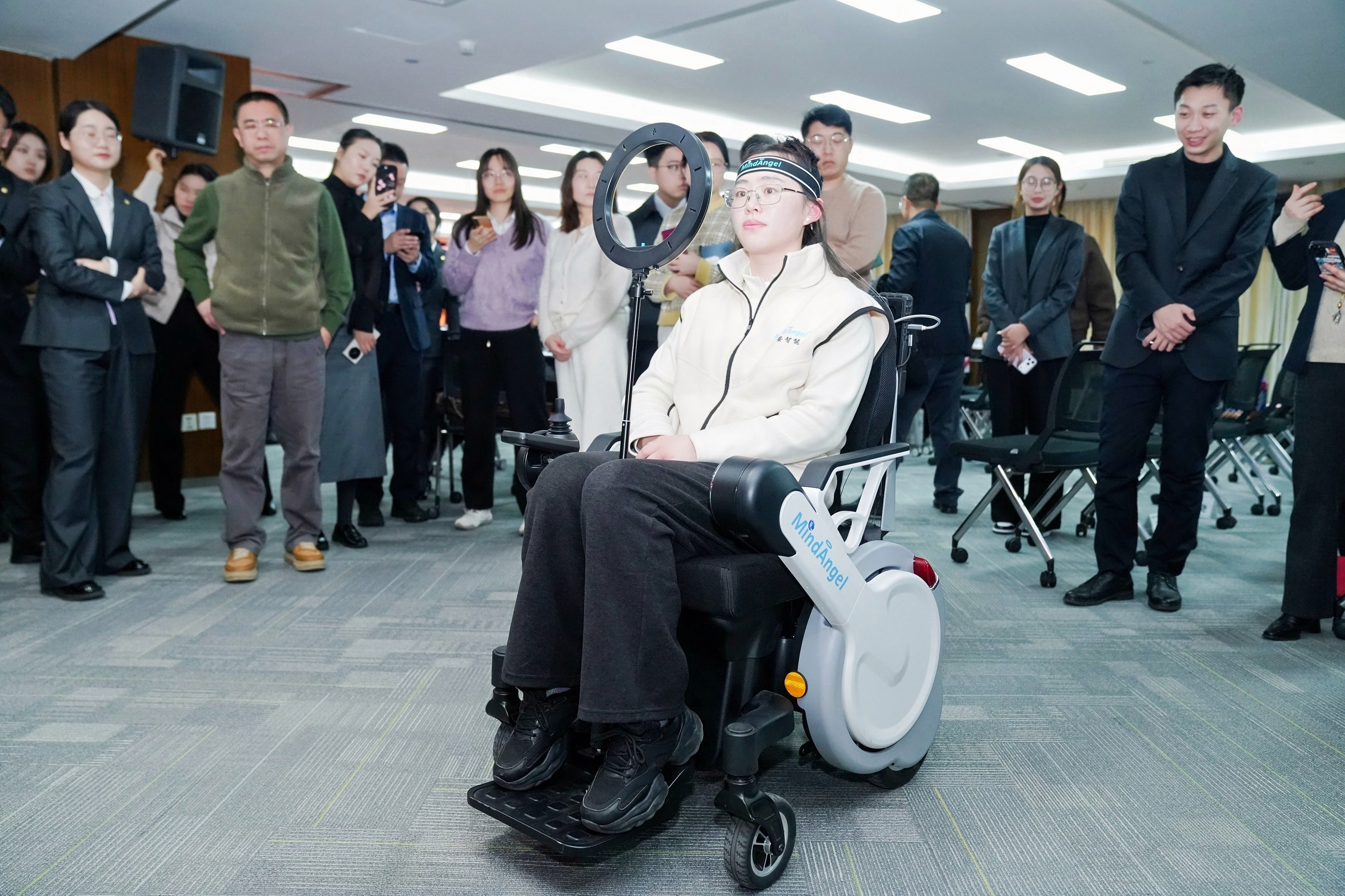 前段时间“爆火”的“脑控轮椅”在这场交流会现场自由穿梭,引起热烈关注。曼安智能创始人、首席科学家宋星认为,随着“十五五”规划《建议》的发布,脑机接口正成为极具潜力的新经济增长点。曼安智能已攻克了从硬件研发、软件搭建到算法优化的重重技术难关,构建起全栈式自主研发体系,从最初为高强度任务群体提供脑功能增强技术,到深耕孤独症干预、运动功能康复,将推动脑机接口从实验室走向千家万户。