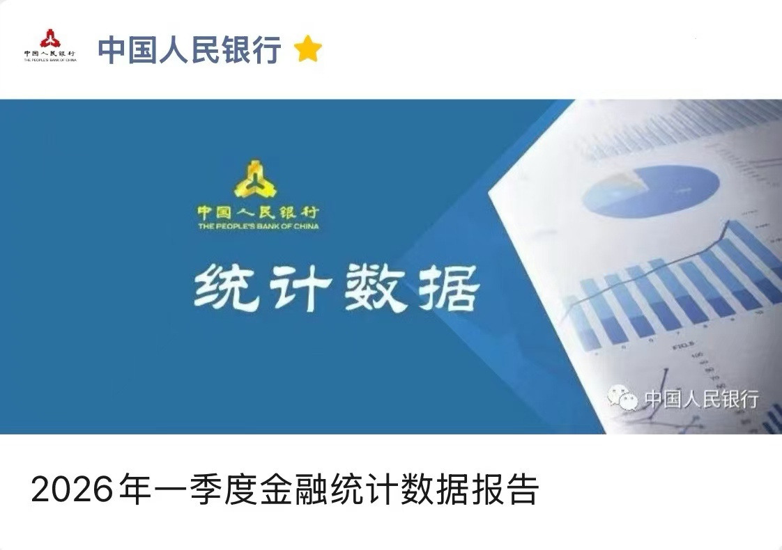 中国人民银行发布2026年一季度金融统计数据报告